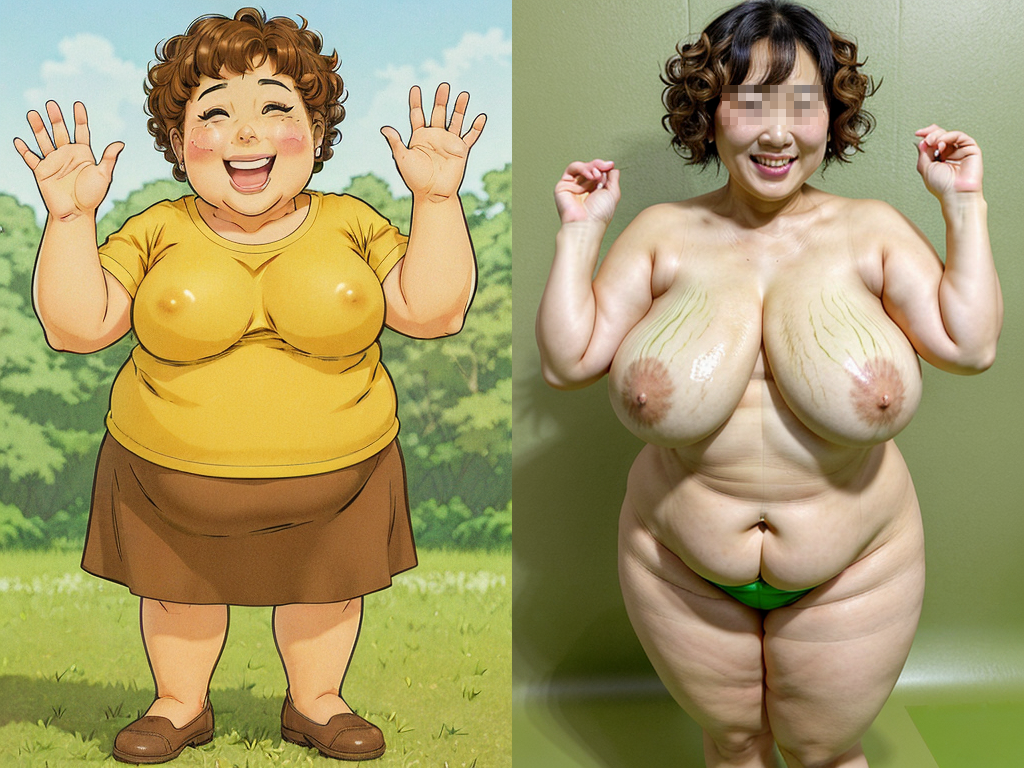 【AI生成画像】2Dが3Dで!リアルな垂れ超乳ポチャポチャ熟女ができちゃった!